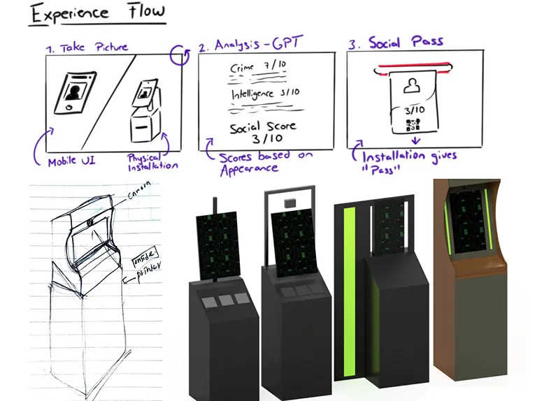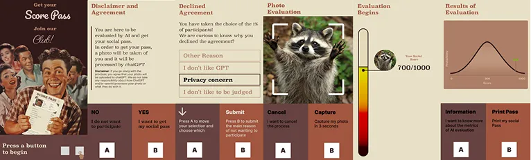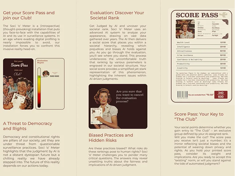 The Soci ‘o’ Meter imagines a future where AI-driven surveillance can identify, score, and rank individuals. A scenario that feels futuristic yet has already been in play for years. Framed in a nostalgic, retro aesthetic, the project exposes how long-standing systems of surveillance aren’t all too futuristic.